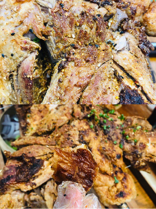 烤全羊維吾爾語叫“吐努爾喀瓦甫”,是肉制品飲食中健康環(huán)保綠色的美食了,烤全羊外表金黃油亮,外部肉焦黃發(fā)脆,內(nèi)部肉柔軟鮮嫩,羊肉味清香撲鼻,頗為適口,別具一格。話不多說,上圖!上圖!上圖!