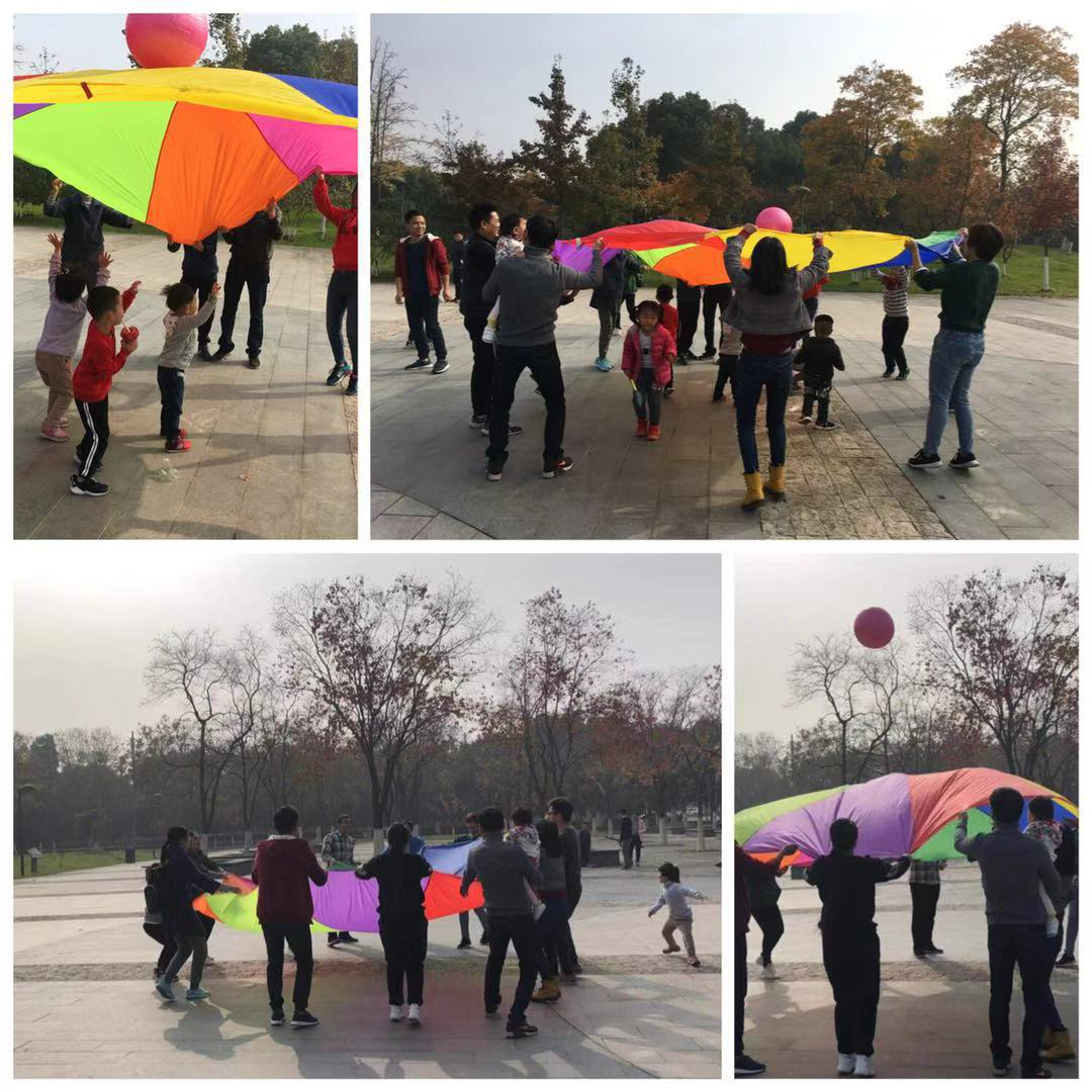 彩虹傘,看似簡(jiǎn)單,卻要求大人們配和默契。孩子們也在傘下玩的不亦樂(lè)乎