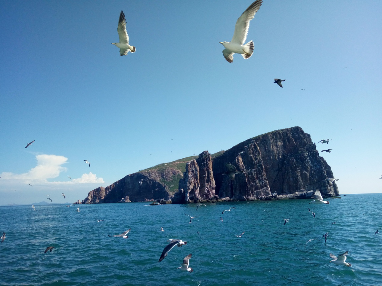 在這里,成百上千只海鷗群飛、嬉戲的壯觀畫面,著實(shí)令人賞心悅目、興致盎然。當(dāng)海浪拍打礁石的聲音和海鷗的叫聲交織在一起,當(dāng)雙眼注視著海鷗盡情地在崖壁上空飛翔的時(shí)候,你的心,也隨著海鷗飛翔起來。