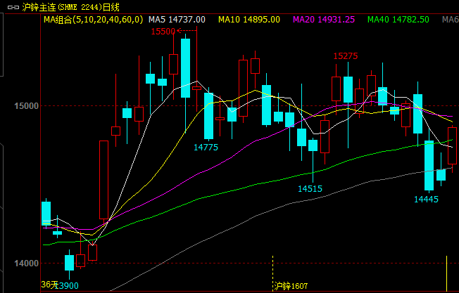 滬鋅周內(nèi)走勢相對穩(wěn)定,盤中最高價在15150元/噸,最低價在14445元/噸,整體較上周跌90元/噸,跌幅0.60%。雖目前國內(nèi)供需面逐步轉(zhuǎn)弱,下游企業(yè)剛需疲弱的前提下,加之宏觀環(huán)境轉(zhuǎn)空,短期不利鋅價上行。但目前鋅價底部仍存明顯支撐,進口礦有價無市,國產(chǎn)礦產(chǎn)量收縮的現(xiàn)狀明顯支撐鋅價跌幅收窄,滬鋅主力圍繞布林道下軌振蕩整理,短期繼續(xù)關(guān)注14500元/噸一線支撐。