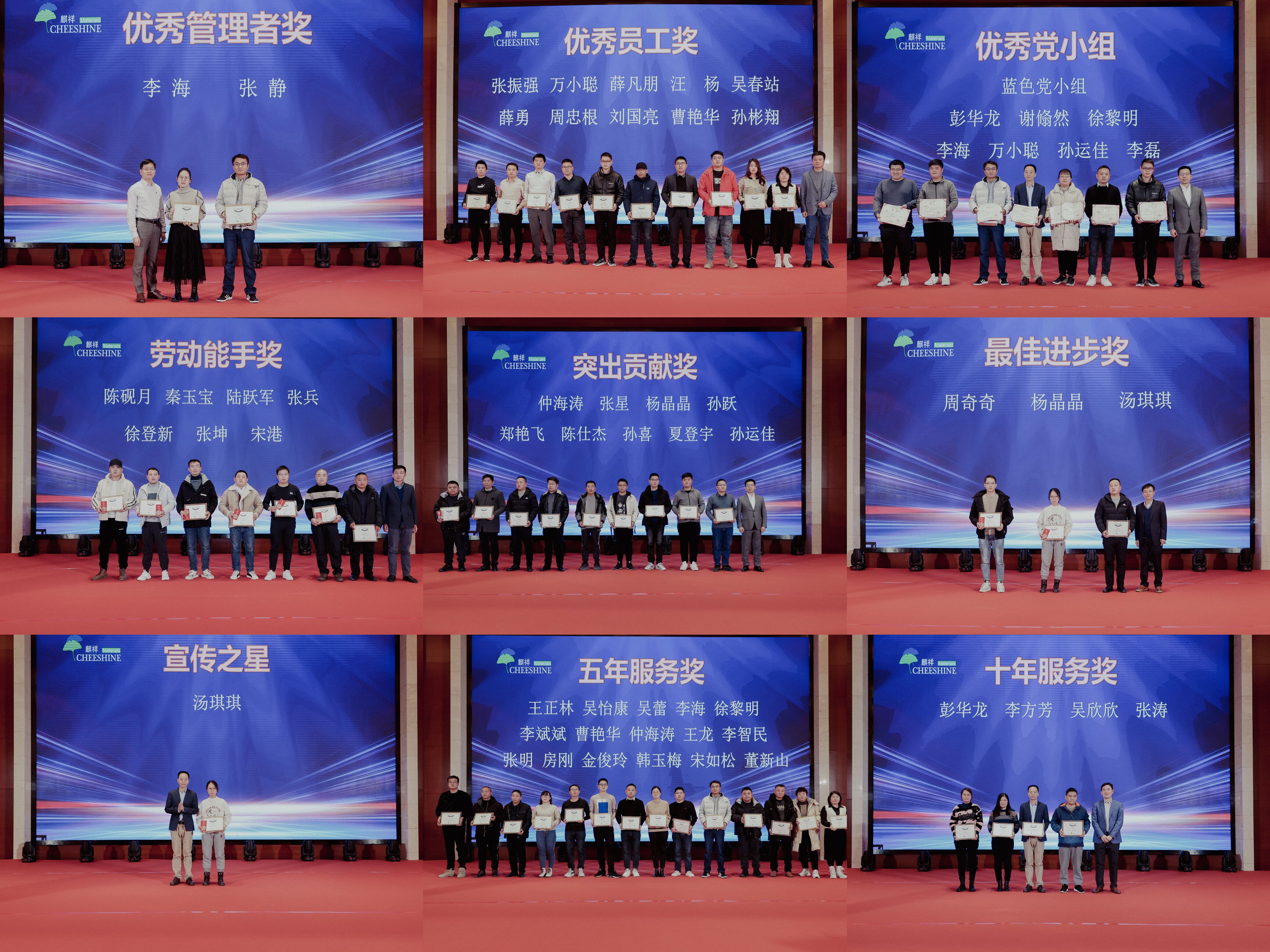 大會進行第二項,2022年度表彰儀式。這一年來我們麒祥人攜著輝煌載著收獲,留下了一行行堅實的足跡,經(jīng)歷了艱辛也收獲了成長。公司在取得各項傲人成績的同時,深知這些功績離不開麒祥涌現(xiàn)出的一批批有志之才和基層員工。隨著一陣陣熱烈的掌聲響起,由7位高層領導先后頒發(fā)了勞動能手獎、最佳進步獎、優(yōu)秀員工獎、優(yōu)秀管理者獎、五年服務獎、十年服務獎、宣傳之星獎、優(yōu)秀黨小組獎和突出貢獻獎。此次表彰頒獎儀式大大激勵了在座的每位員工,大家紛紛為獲獎者送上了熱情的掌聲和衷心的祝賀。