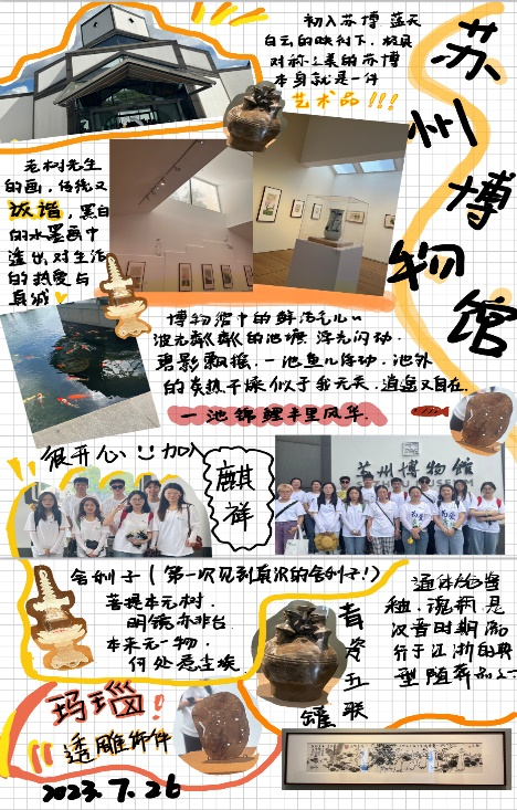 在專業(yè)知識熟練運(yùn)用的同時,要補(bǔ)全“短板”,德、智、體、美、勞全面發(fā)展,為公司事業(yè)的蓬勃發(fā)展貢獻(xiàn)自己的智慧和力量。培訓(xùn)營的第三天,為了提高新人的美學(xué)修養(yǎng),公司新人一同參觀了蘇州博物館并制作了自己的美學(xué)報(bào)告,報(bào)告形式多樣,展示了新人對蘇博的見解。