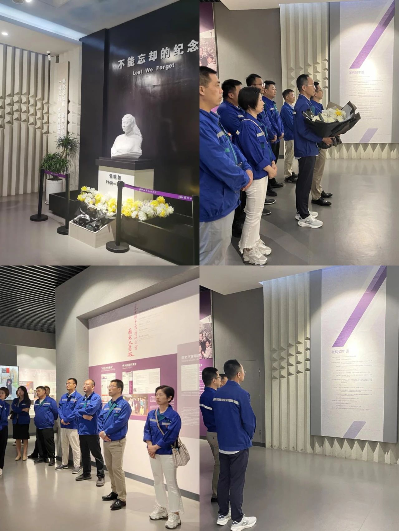 到達(dá)張純?nèi)缂o(jì)念館后,全體人員向張純?nèi)缂o(jì)念碑前敬獻(xiàn)鮮花。跟隨講解員,聆聽張純?nèi)鐒?chuàng)作《?南京大屠殺》?的過程和背景,?通過張純?nèi)缍虝憾鴤ゴ蟮囊簧墓适?,深刻認(rèn)識(shí)到戰(zhàn)爭(zhēng)對(duì)人性的摧殘和人類生命的脆弱,??從而更加珍惜和平、?警醒未來,銘記歷史、不忘國恥。